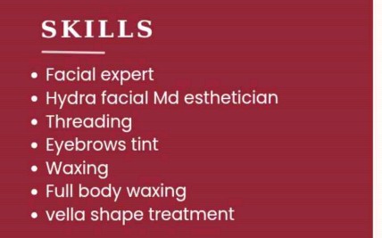 full body waxing, threading eyebrow and full face, facial expert, Hydra facial, Md esthetician, Threading, Eyebrows tint, Waxing, Vella shape treatment